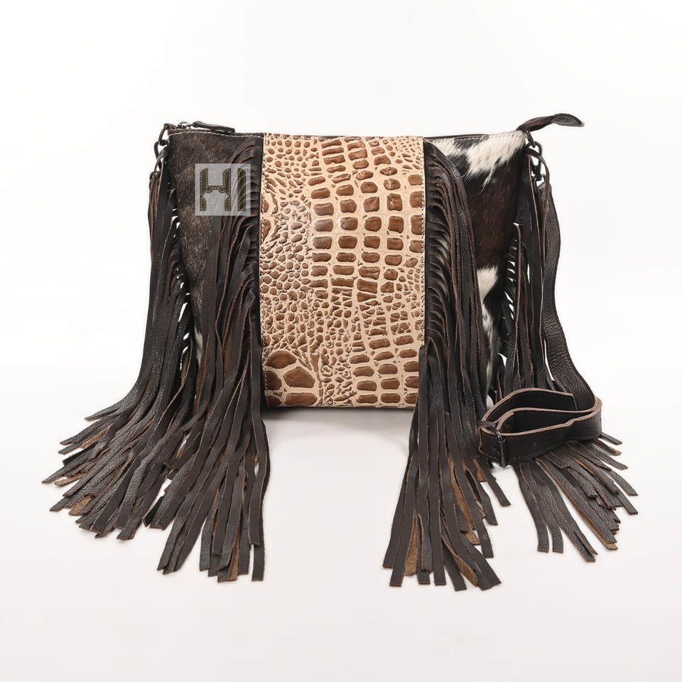 กระเป๋าสะพายข้างหนังแท้สำหรับผู้หญิง, กระเป๋าหนังวัวแท้และหนังจระเข้มีขอบทำด้วยมือสไตล์ตะวันตก