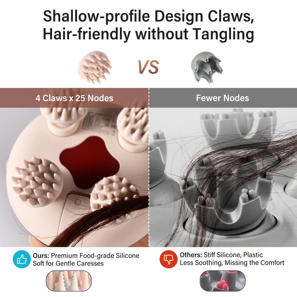 เครื่องนวดศีรษะซิลิโคนแบบไฟฟ้า รุ่นมาแรงปี 2024 พร้อมแสงสีแดง สำหรับสปาหนังศีรษะ