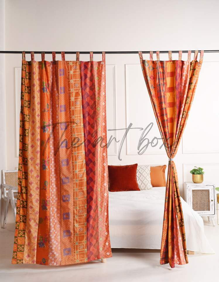 Product name:Vintage Sari Patchwork Curtain Drape Window Silk Curtain