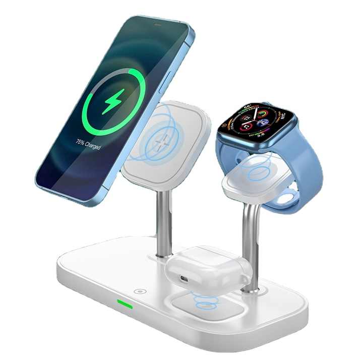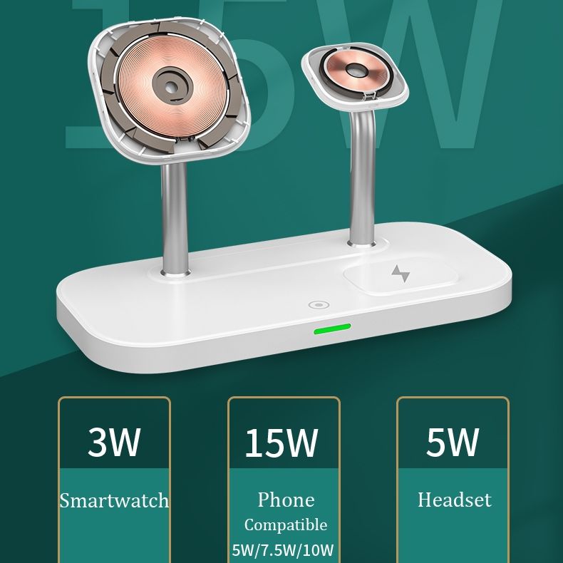 ที่ชาร์จไร้สายระบบแม่เหล็กเร็ว15W แบบ3-in-1ที่ไม่ซ้ำใคร2024พีซีอุปกรณ์อัพเกรดโคมไฟแท่นชาร์จสำหรับหูฟัง iPhone สำหรับ airp