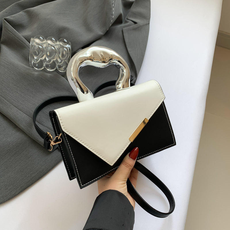 กระเป๋าถือแฟชั่นสะพายข้างของผู้หญิงแนววินเทจแบบเรียบง่ายฤดูใบไม้ผลิ2024เรียบง่ายลำลองกับโลหะ & พื้นผิวสีที่ตัดกันและเข้ากัน