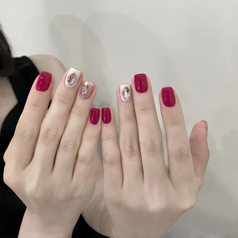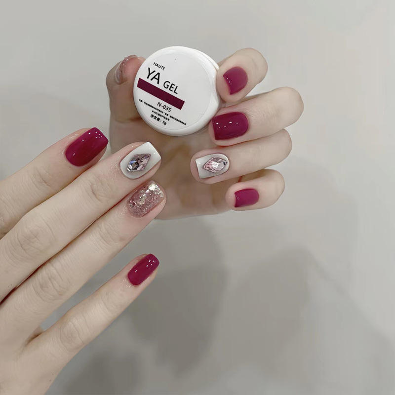 Xiaohongshu สติ้กเกอร์ติดเล็บมุกสีม่วงสดใสสำหรับฤดูใบไม้ร่วงและฤดูหนาว2024สวมใส่ได้