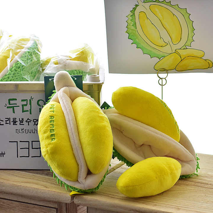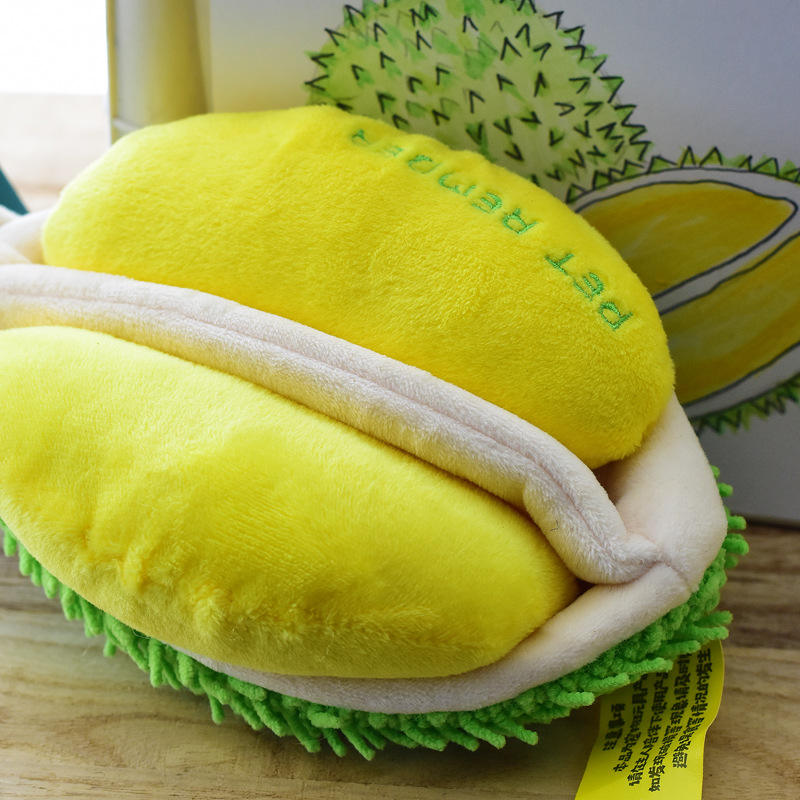 2024 ขายส่งที่กําหนดเองแท็กทุเรียนผลไม้สัตว์เลี้ยงตุ๊กตาลูกสุนัขอุปกรณ์เสริม Chewers สุนัขกัดซ่อนและป่วยของเล่น