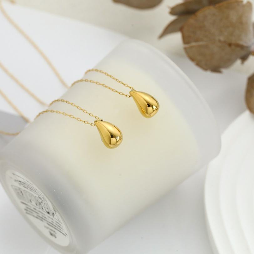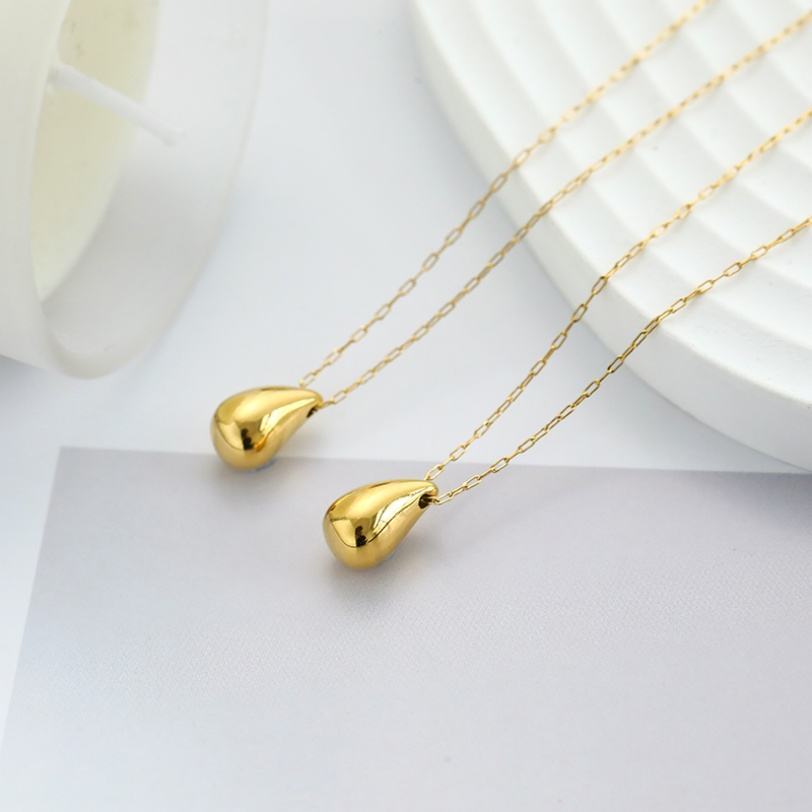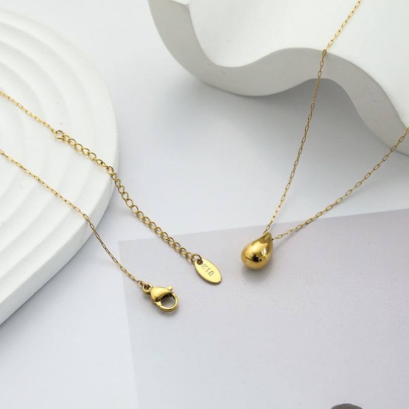 สร้อยคอแฟชั่นสแตนเลสสตีลชุบทอง 18K รูปทรงหยดน้ำ ไม่หมอง ปี 2024 รับผลิตตามสั่งขายส่ง