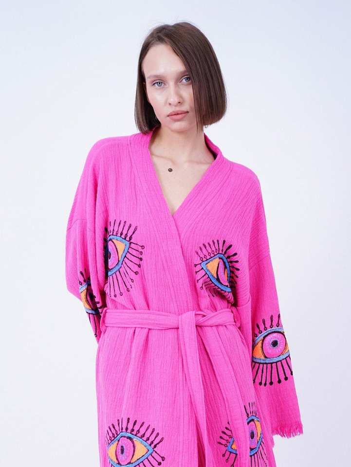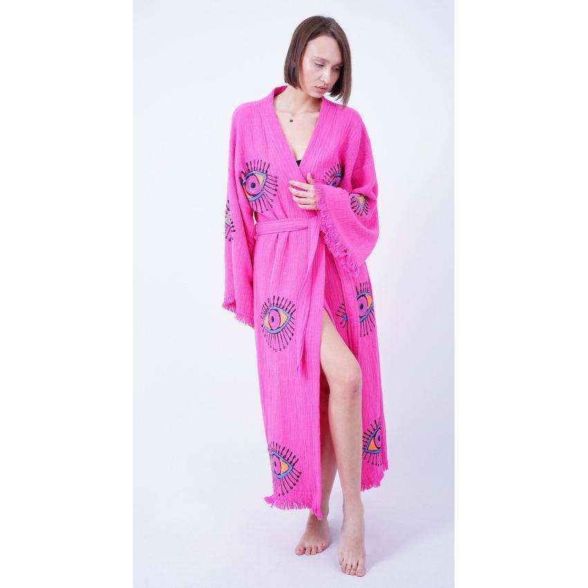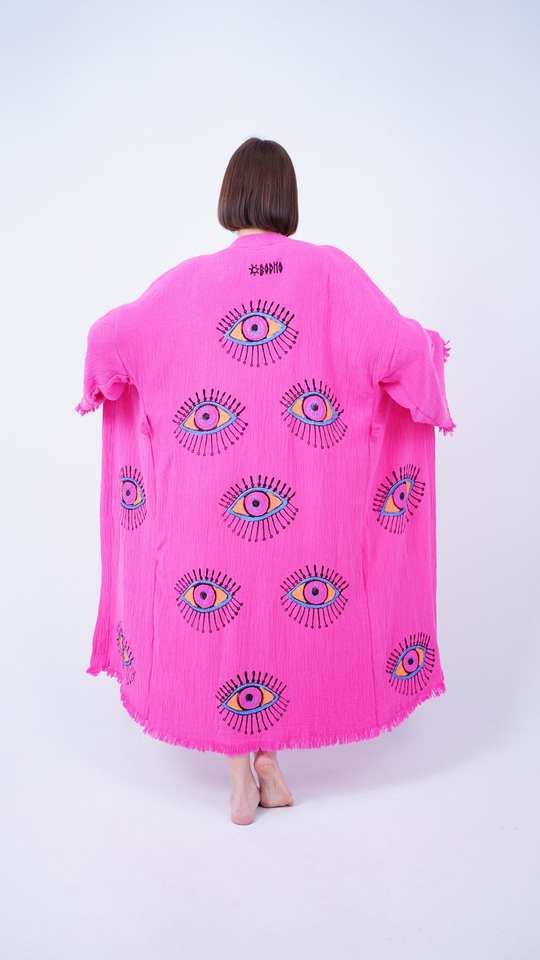 ชุดคลุมชายหาดแขนยาวปักลายตาปีศาจแบบยาวคลุมเท้า ราคาขายส่งปี 2024
