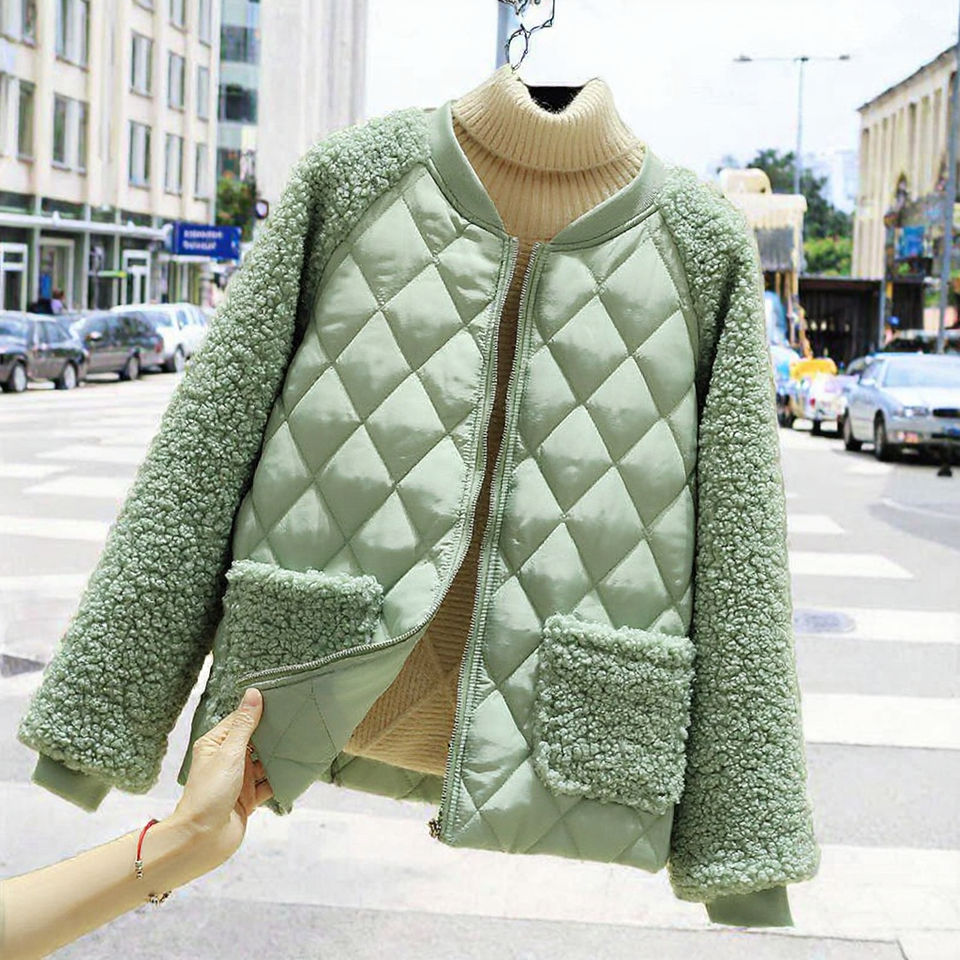 เสื้อโค้ทขนยาวมีซิปสำหรับผู้หญิง2024ฤดูหนาวเสื้อนอกลำลองเนื้อหนาเป็นมิตรกับสิ่งแวดล้อมตกแต่งโลโก้