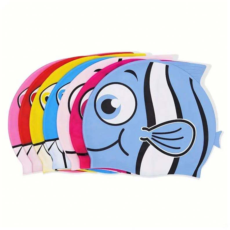 หมวกว่ายน้ำซิลิโคนสำหรับผู้หญิง ปี 2024 ป้องกันหู สำหรับผมสั้น/กลาง/ยาว ลายการ์ตูนปลา ยี่ห้อ usa Mairun