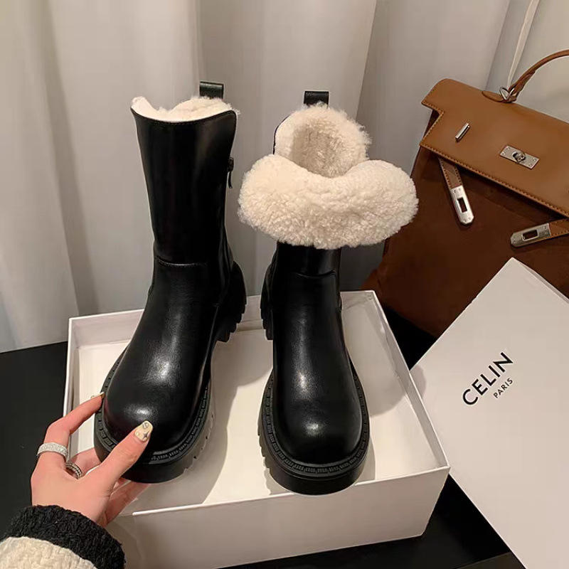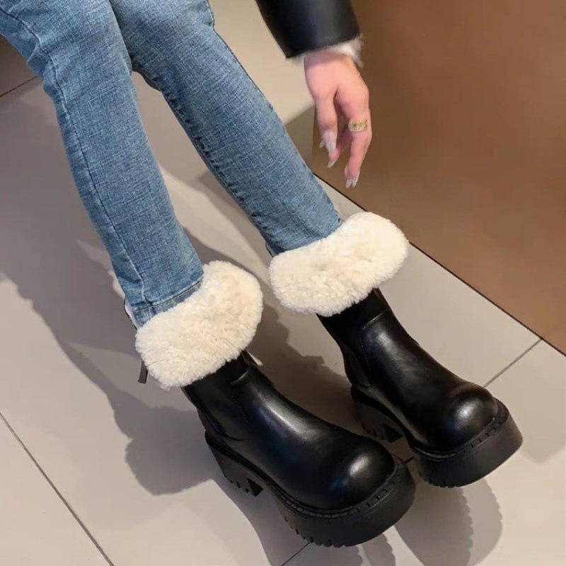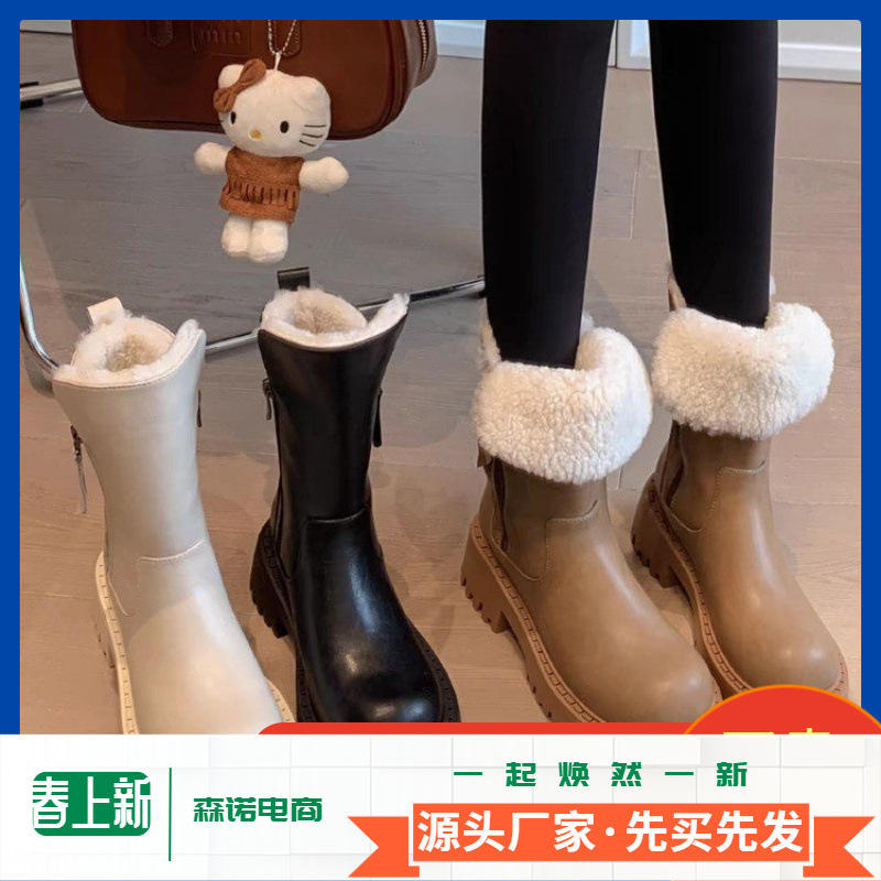 2024รองเท้าบูทกันหิมะของผู้หญิง, รองเท้าผ้าฝ้ายขนกำมะหยี่หนารองเท้าสั้นกันลื่นกับรองเท้าผู้หญิงที่อบอุ่นในภาคตะวันออกเฉียงเหนือ