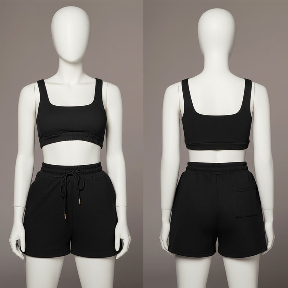 กางเกงขาสั้นผู้หญิงและชุดท็อปไร้รอยต่อ:ชุดกางเกงขาสั้นสำหรับผู้หญิงสองชิ้น
