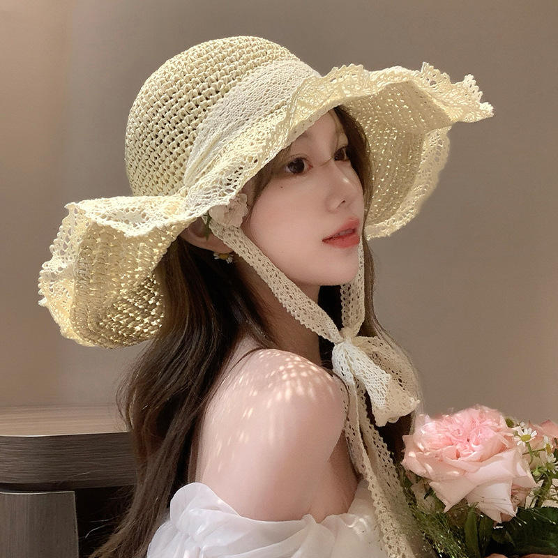หมวกปีกกว้างสไตล์ใหม่สำหรับผู้หญิงปี 2024 ป้องกันแสงแดด เหมาะสำหรับใช้ในชีวิตประจำวัน ชายหาด และวันหยุด