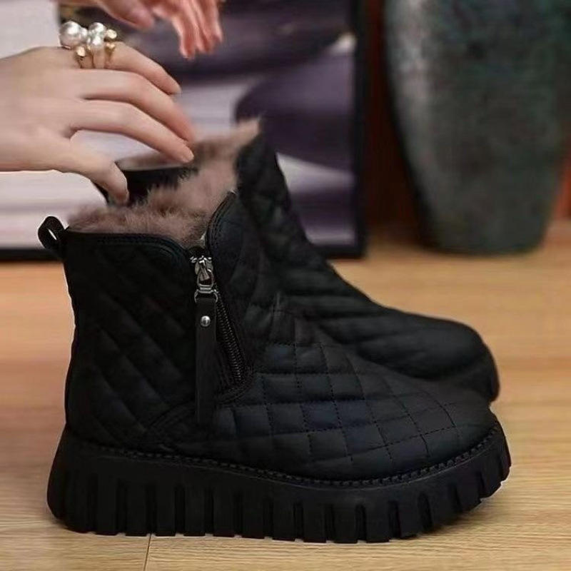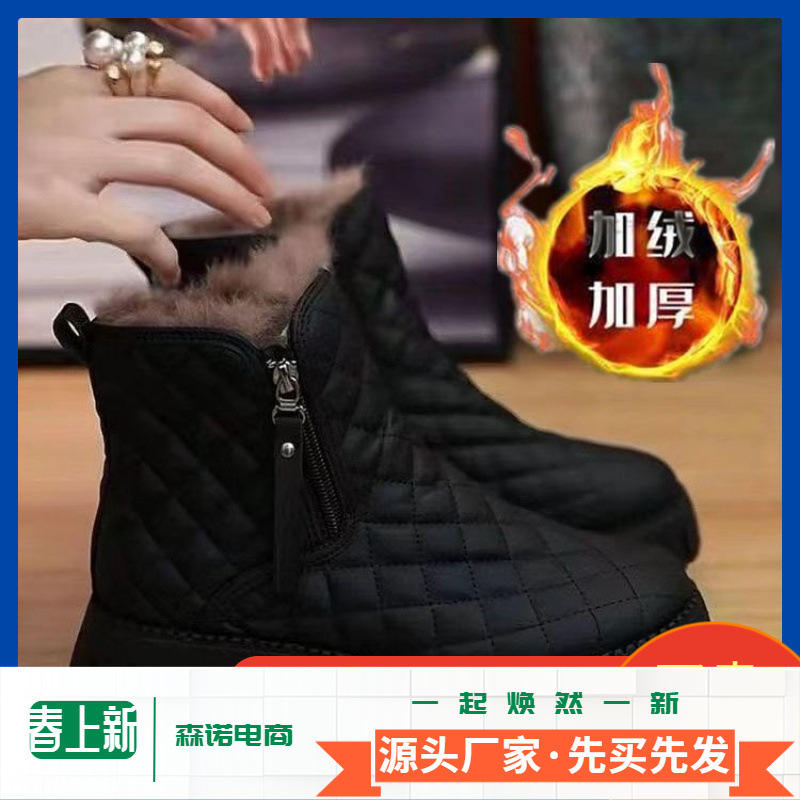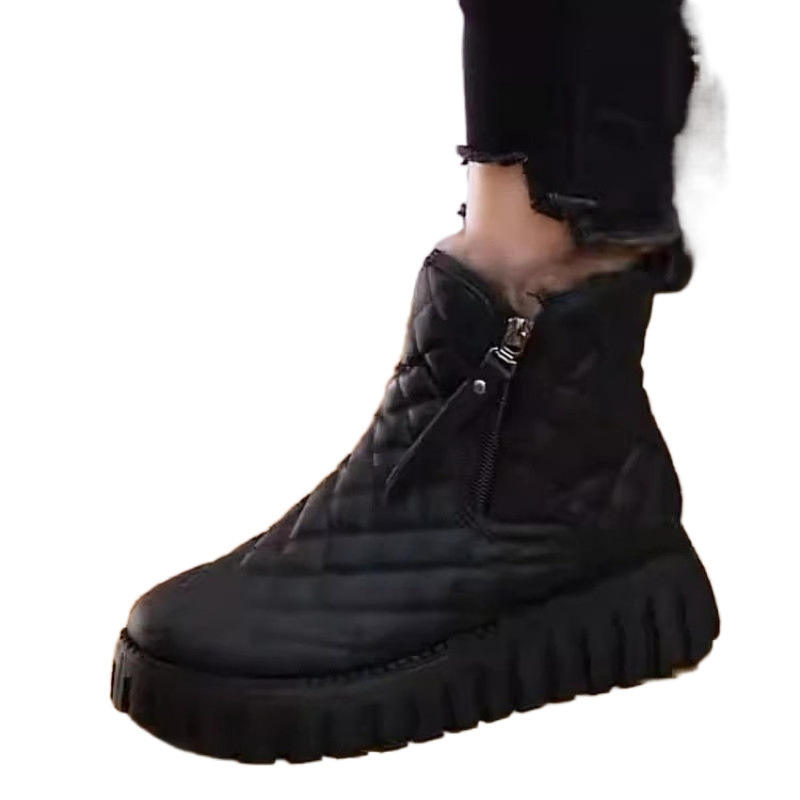 2024บูตลุยหิมะของผู้หญิงกันน้ำได้, รองเท้าผ้าฝ้ายหนาเหมาะกับภาคตะวันออกเฉียงเหนือมีขนสั้นพื้นหนาดีไซน์ไม่ลื่น
