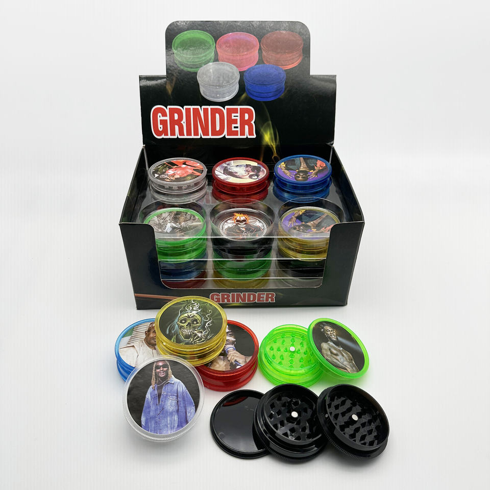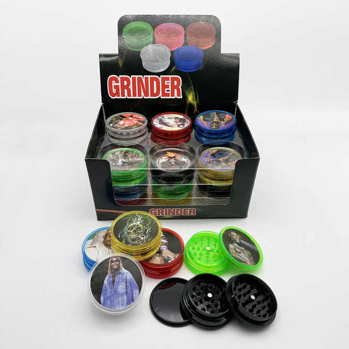 เครื่องบดพลาสติกสไตล์มีสีสัน60มม.-3ส่วนพร้อมสติ๊กเกอร์ใหม่2024ปี