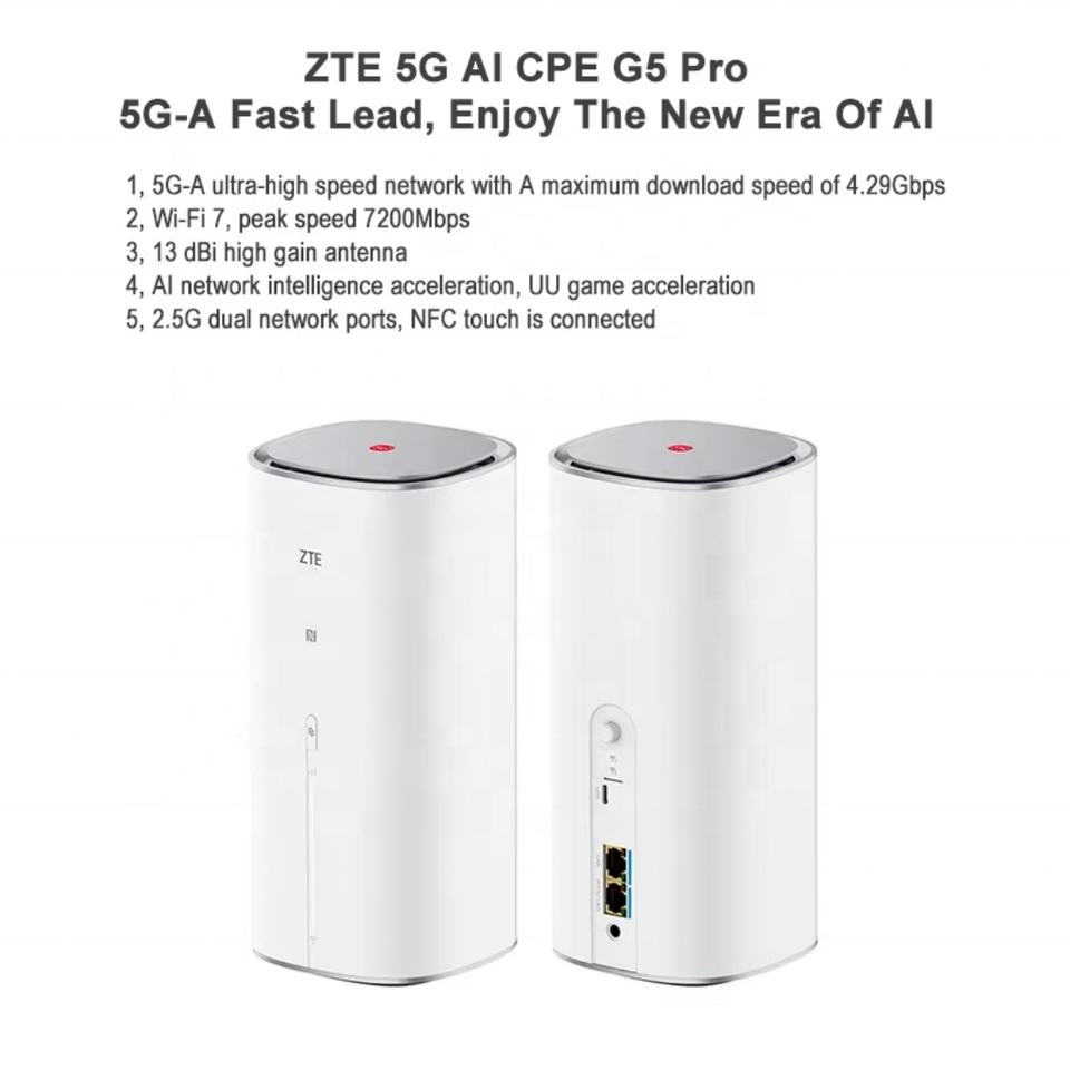 2024 ZTE 5g Ai CPE G5 Pro WIFI 7 BE7200เตอร์ MC8512 WiFi 7พอร์ตอีเธอร์เน็ต NFC 5G ไร้สาย WIFI 5G ซิมเราเตอร์4.29Gbps 256ผู้ใช้