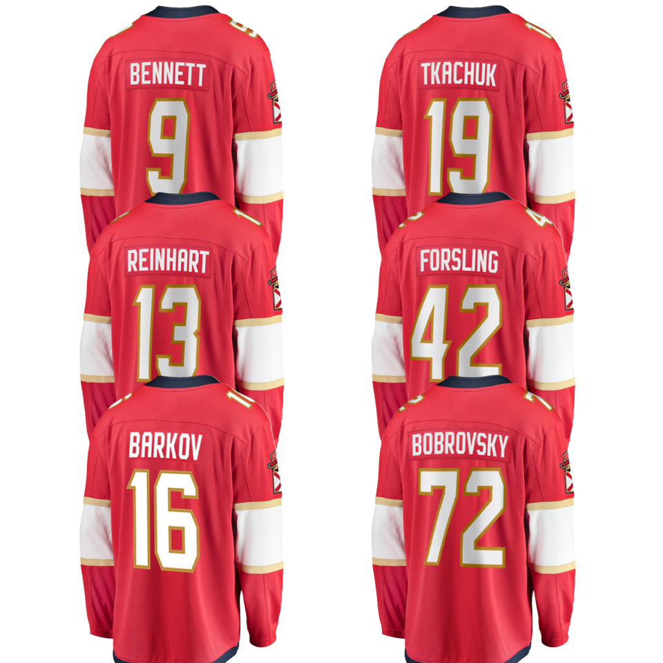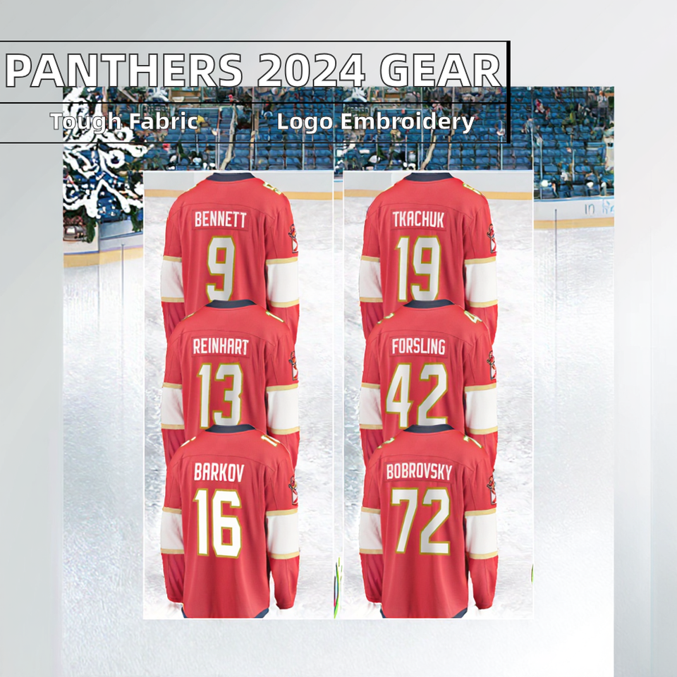 2024สำหรับฟลอริด้าแพนเทอร์สปักลายเสื้อฮ็อกกี้น้ำแข็งเย็บชุดกีฬากับ #16 barkov #19 tkachuk #72 #13 #42