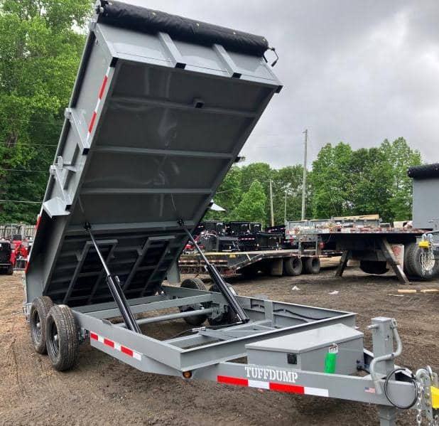 รถดัมพ์มาตรฐานสูง ปี 2024 ขนาด 7×16 นิ้ว น้ำหนักบรรทุก 14,000 ปอนด์ (GVW) 7 ตัน เพลาคู่ ด้านข้างสูง 2 ฟุต ระบบไฮดรอลิกสำหรับงานหนัก