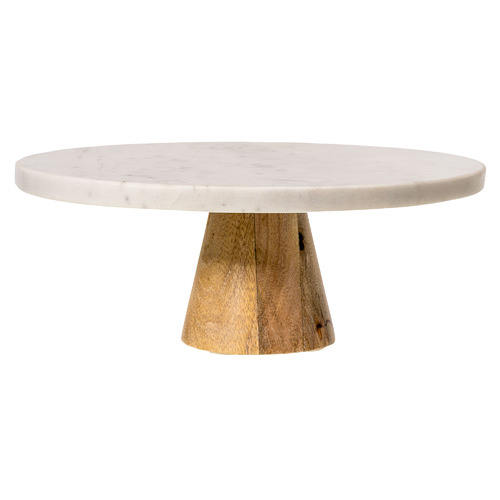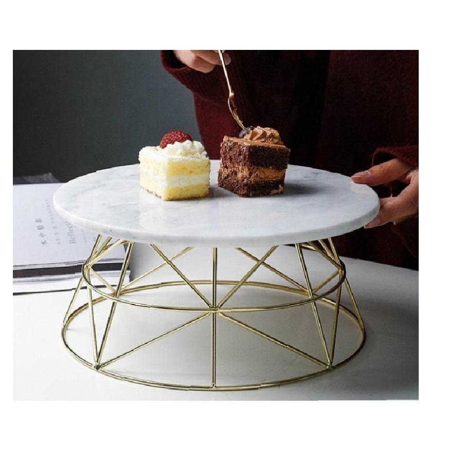 แท่นวางเค้กหินอ่อนพร้อมฐานไม้รูปทรงกลมบนโต๊ะอาหารเค้กช็อคโกแลตดีไซน์น่าชื่นชม