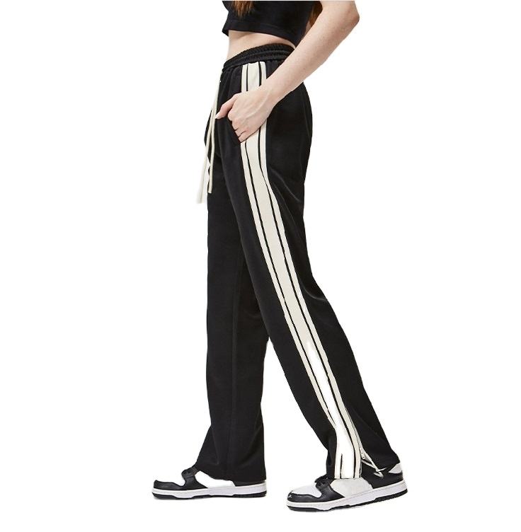 2024 Latest Designs Striped White Elastic Waist Women Sweatpants Black Pants Wide Leg Customized Oversized Women Sweatpants