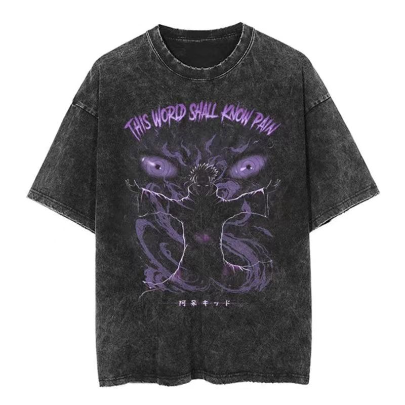 เสื้อยืดหลวมพิมพ์ลาย2024การ์ตูนคลาสสิกญี่ปุ่นขนาดใหญ่ย้อนยุคพิมพ์ลายบนหน้าจอผ้าบาติก
