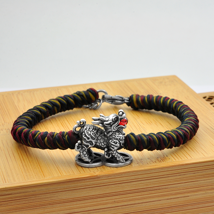 2024 New Trendy Fine Jewelry Bracelets Chinese Mythology Lucky Healthy Kylin Coin 925 Sterling Silver Bracelet
