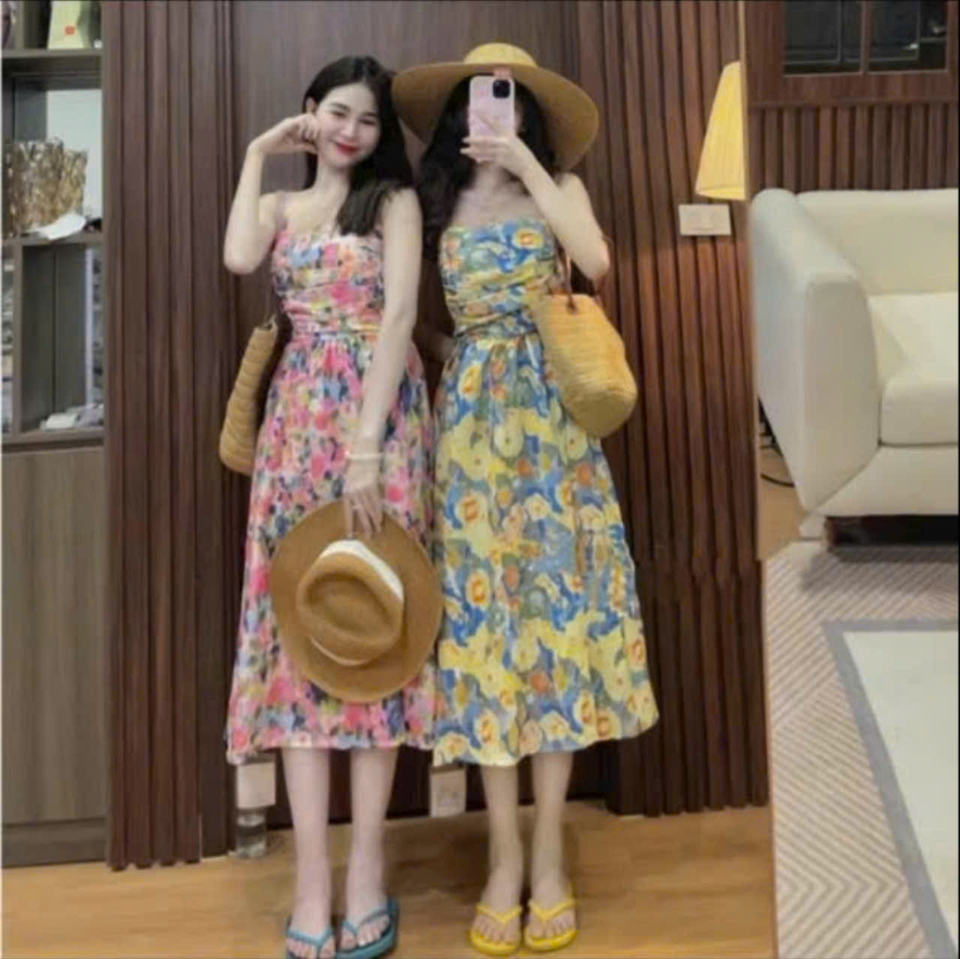 2024เดรสยาวแขนกุดสำหรับผู้หญิงเดรสแม็กซี่ผ้าไหมลายดอกไม้ซักได้ฤดูร้อน