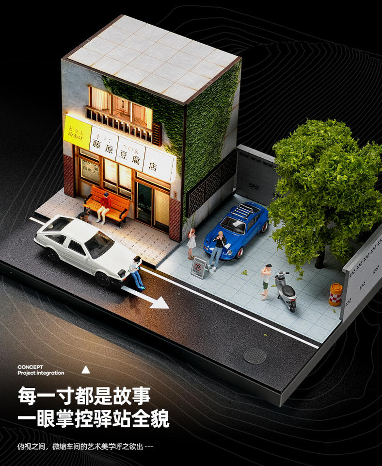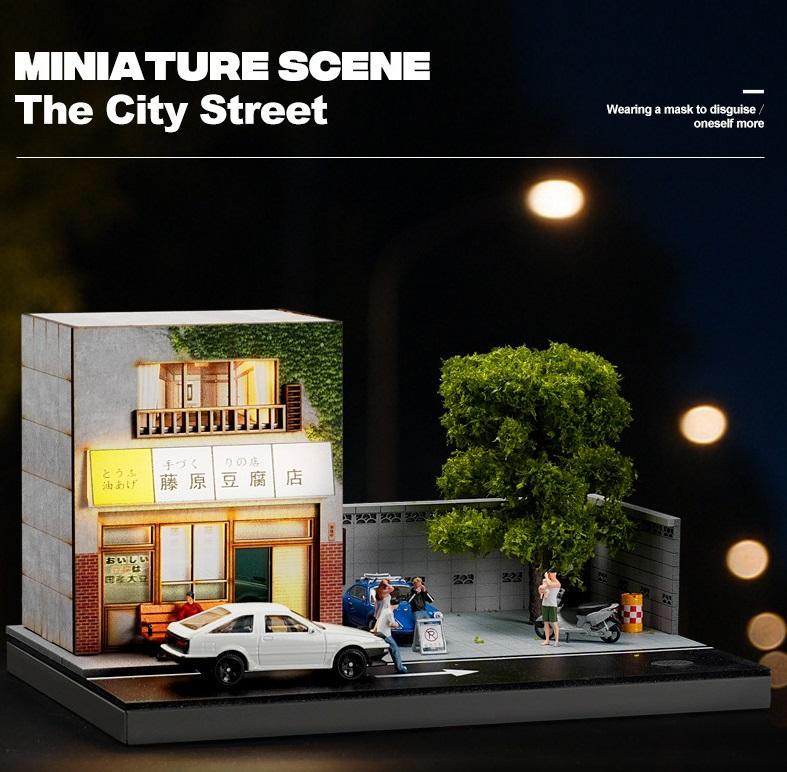 2025-08โมเดลรถดายแคสต์1:64โมเดลที่จอดรถไม้แข็งแบบทำมือโมเดลฉาก DIY