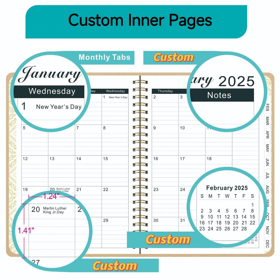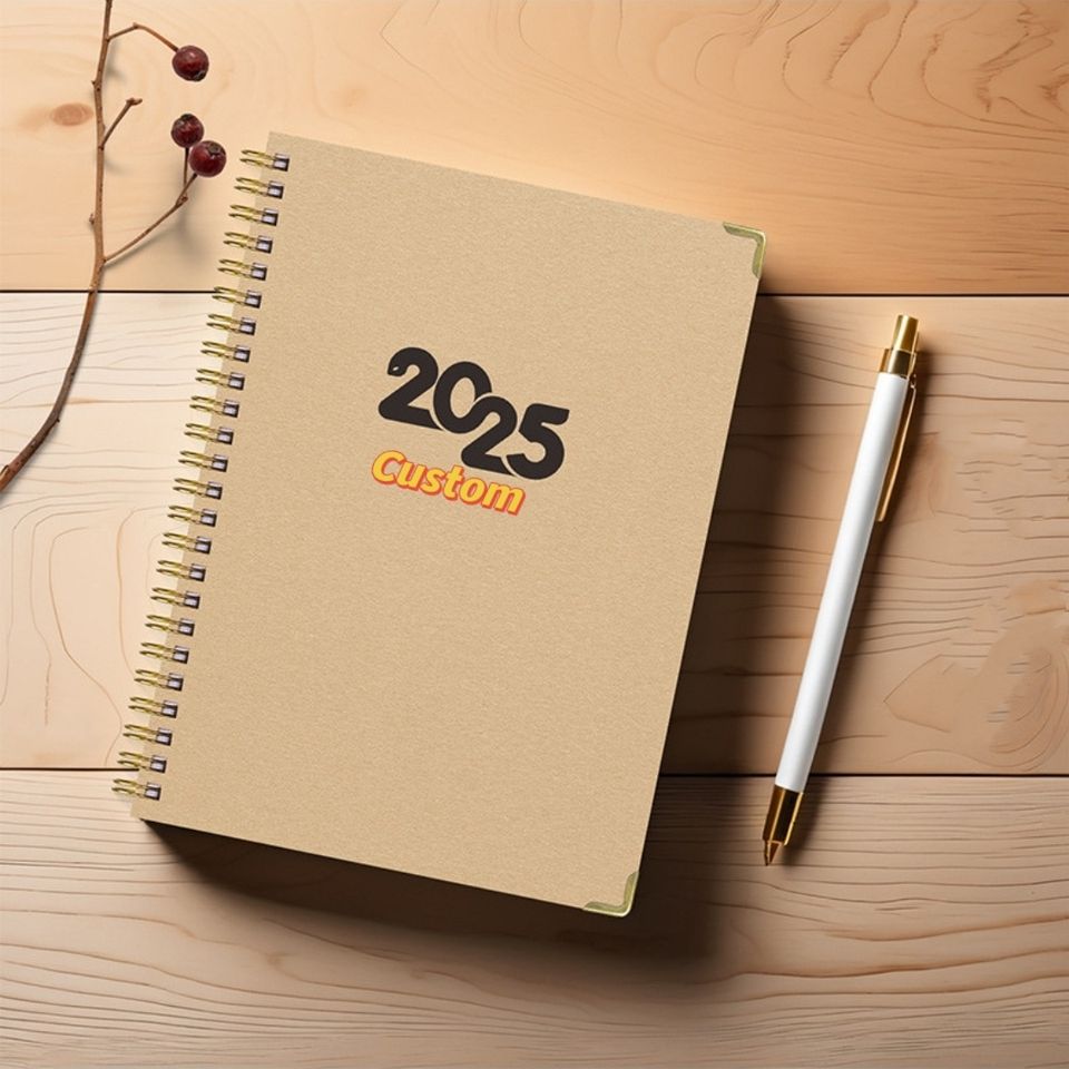 สมุดโน้ตเกลียวทำจากคราฟท์ขนาด2025 2026สมุดจดรายวันรายสัปดาห์สมุดโน้ตรายเดือนสมุดจดตารางเวลาตารางเวลา A5ได้รับการรับรอง FSC