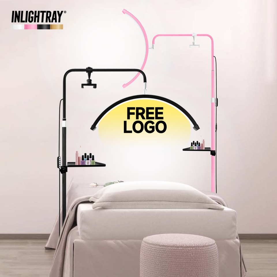 2025 23นิ้วใหม่โคมไฟพื้นโค้ง45W ดีไซน์รูปตัวยูสำหรับการสักคิ้วและการต่อขนตาพร้อมไฟระดับร้านเสริมสวย