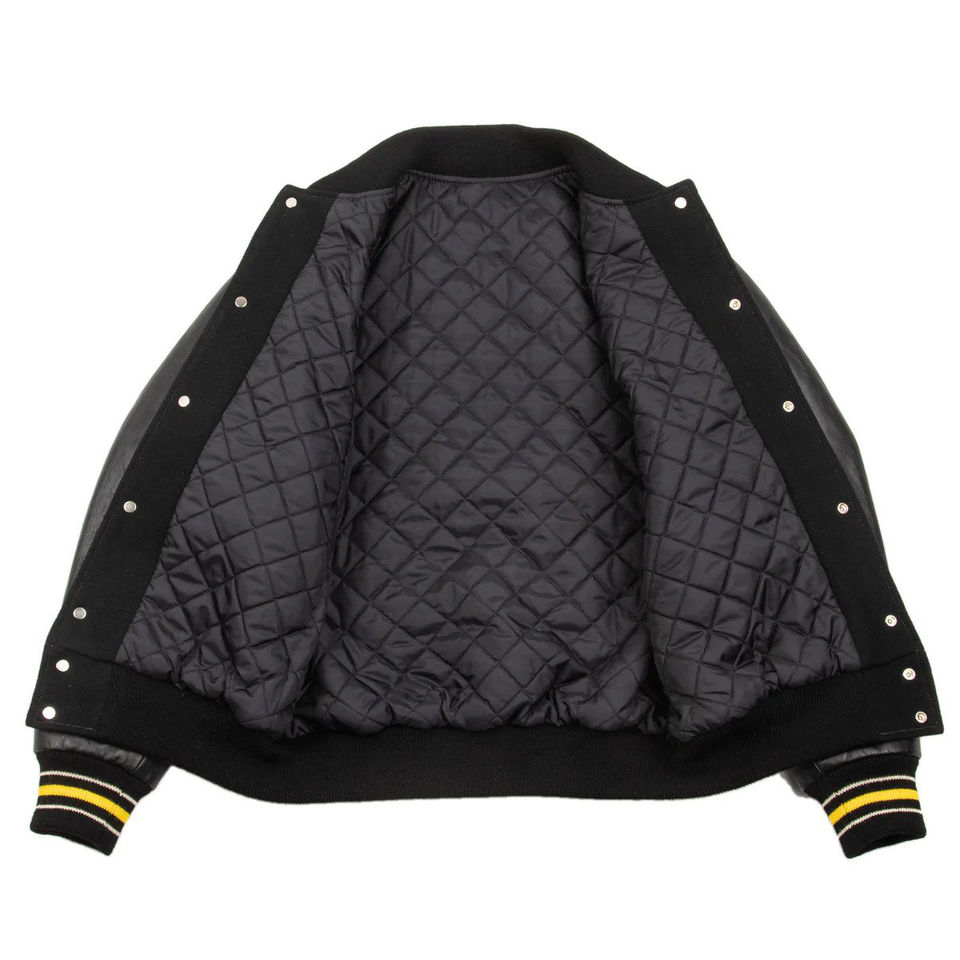เสื้อแจ็กเก็ตผ้าซาตินสำหรับผู้ชายและผู้หญิง2025-26เสื้อแจ็กเก็ตขนสัตว์สีดำเข้มพร้อมแจ็คเก็ตหนังซาติน