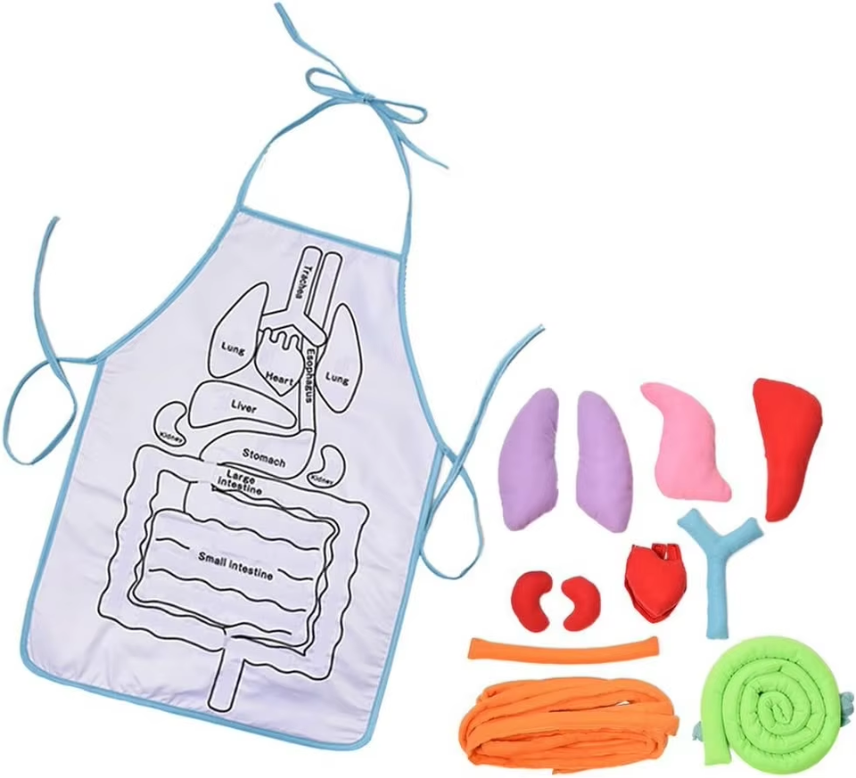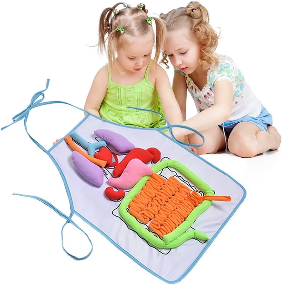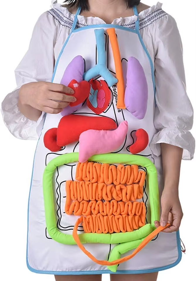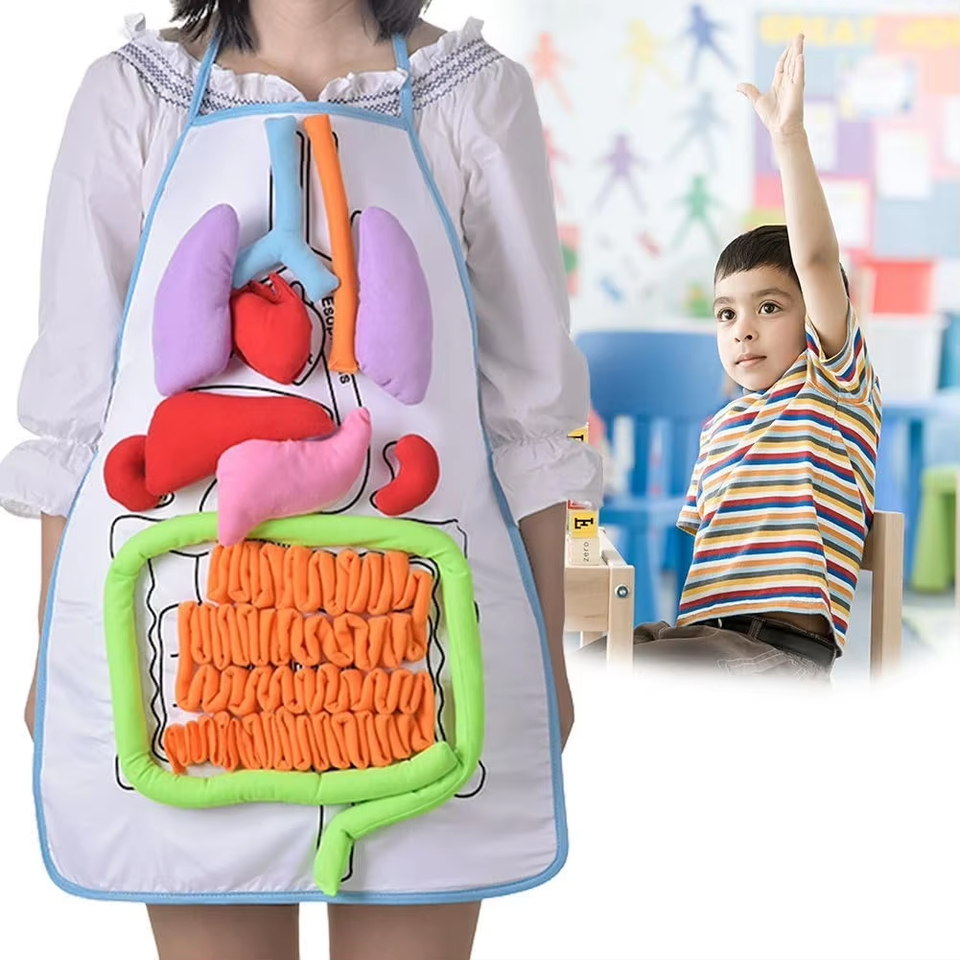 2025 3D ชิ้นส่วนของร่างกายมนุษย์ผ้ากันเปื้อนอวัยวะเพื่อการศึกษาของเล่นสำหรับเด็กอนุบาลเด็กหัดเดินอวัยวะ