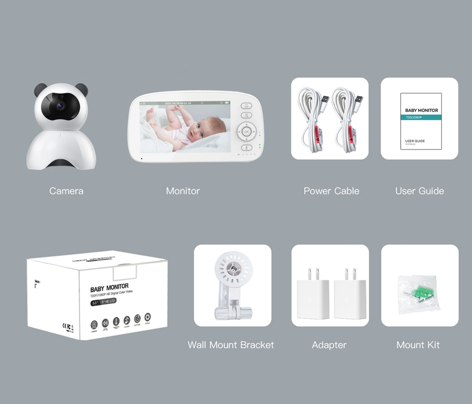 กล้องวงจรปิดสำหรับเด็กแบบแพน-ทิลท์ ความละเอียดสูง 1080p ขนาด 5 นิ้ว ปี 2025 พร้อมเสียงสองทาง ระยะไร้สาย 900 ฟุต มองเห็นในเวลากลางคืน สำหรับดูแลเด็กขณะนอนหลับ