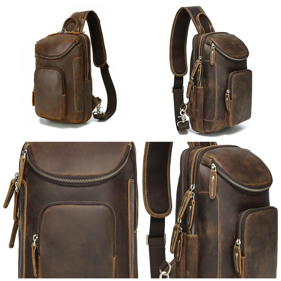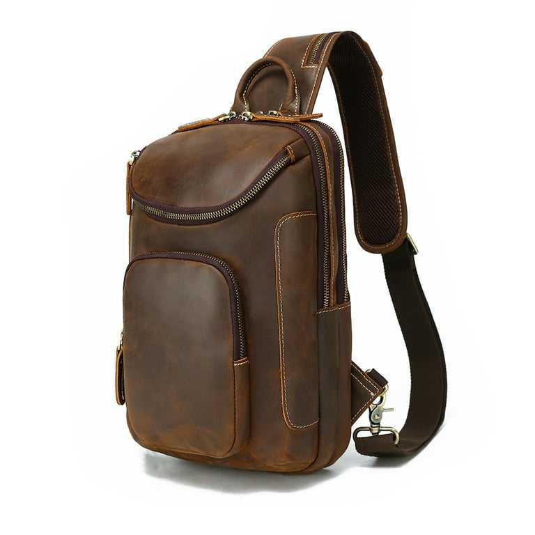2025 alw กระเป๋าสะพายข้างหนังแท้สำหรับผู้ชายกระเป๋าซิปคาดอกแฟชั่นหนังแท้ลายม้าบ้าออกแบบโลโก้ได้ตามต้องการ