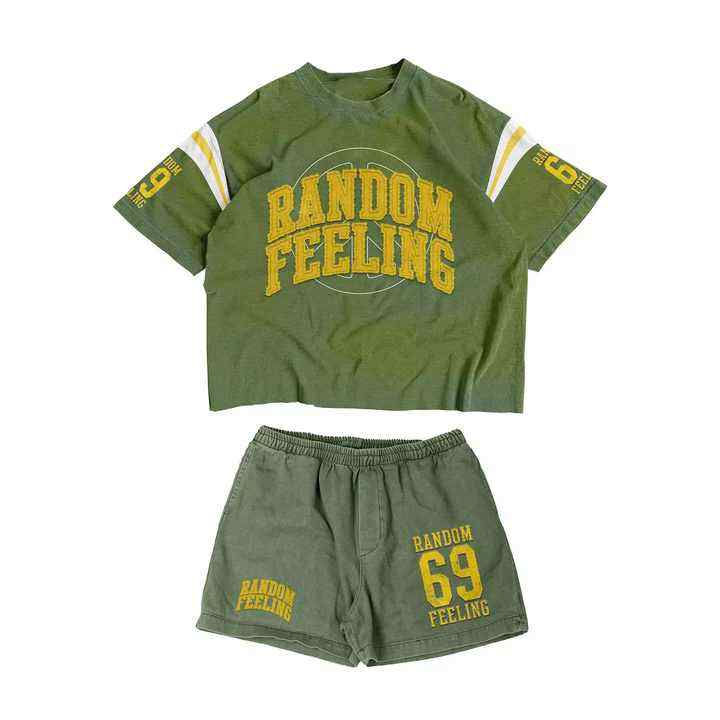 ชุดวอร์มสำหรับผู้ชายเสื้อยืดคอกลมพิมพ์ลายสกรีนกางเกงขาสั้นผ้าคอตตอน100% ฟอกสี2025
