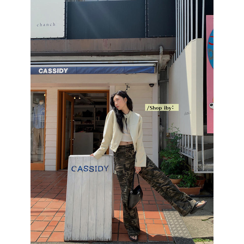 2025กางเกงลำลองเอวสูงลายพรางย้อนยุคอเมริกันชุดหลวมมีเชือกผูกชุดฤดูใบไม้ผลิฤดูใบไม้ร่วง