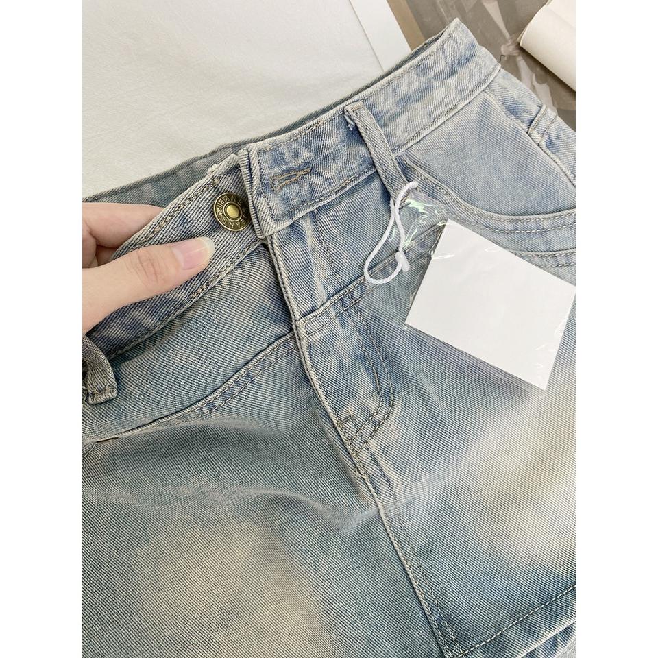 กระโปรงสั้นเอวสูงของผู้หญิงกางเกงยีนส์เด็กผู้หญิงแนวเรโทรร้อนแรงสำหรับฤดูใบไม้ผลิและฤดูร้อนกางเกงบางแบบอเมริกัน2025