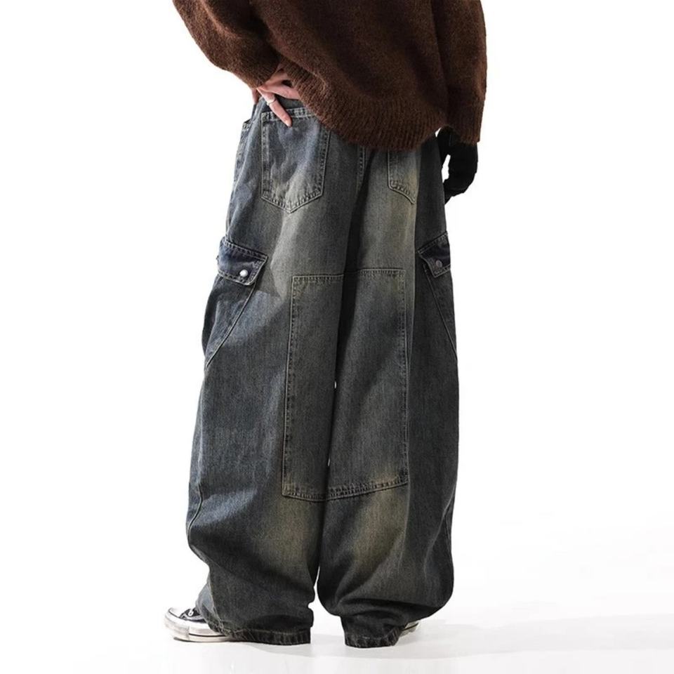 กางเกงยีนส์ทรงหลวมสไตล์วินเทจแบบอเมริกัน ยี่ห้อเทรนดี้สำหรับผู้ชาย ปี 2025 ทรงขากว้างโค้ง