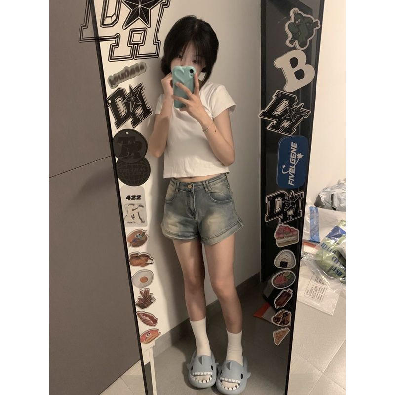 กางเกงยีนส์ขาสั้นพิเศษสำหรับผู้หญิงเอวสูงทรงหลวมสไตล์อเมริกัน2025พร้อมกางเกงขากว้างดีไซน์เพรียวบางสำหรับฤดูใบไม้ผลิฤดูร้อน