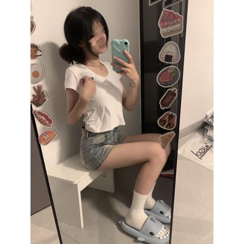 กางเกงขาสั้นสำหรับผู้หญิงสีเงินเนื้อนิ่มลมเย็นหัวกลมชื่อเสียงของนางฟ้าพร้อมคุณสมบัติของถั่วขอบ