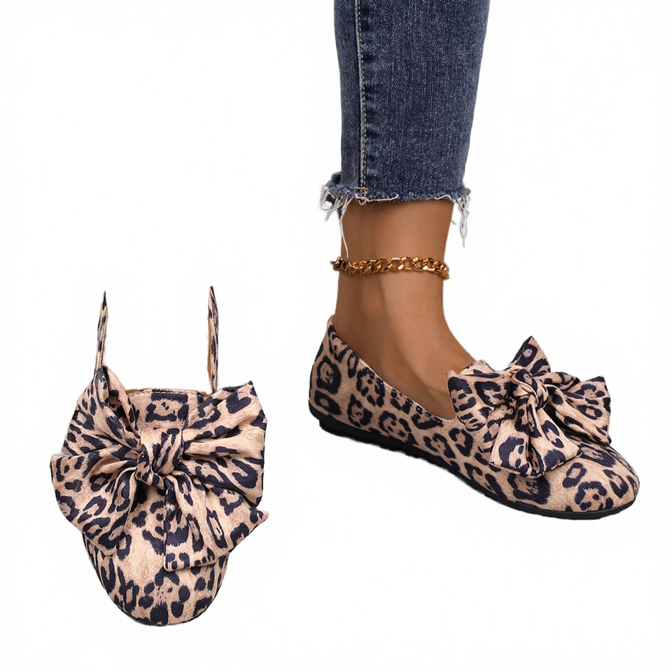 รองเท้าส้นเตี้ยแบบสวมสำหรับผู้หญิง คอลเลคชั่นใหม่ฤดูใบไม้ร่วงปี 2025 ประดับโบว์ หัวเหลี่ยม ไซส์ใหญ่พิเศษ รองเท้าสำหรับคนท้อง