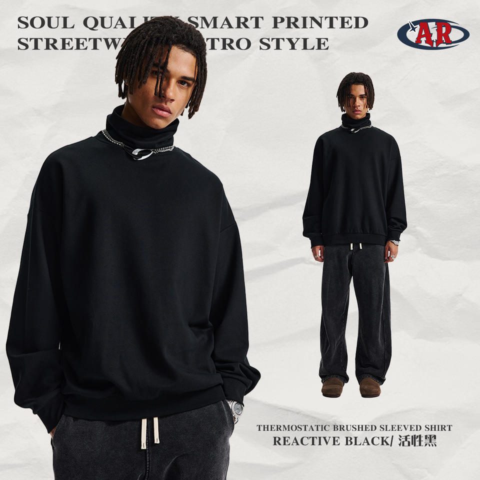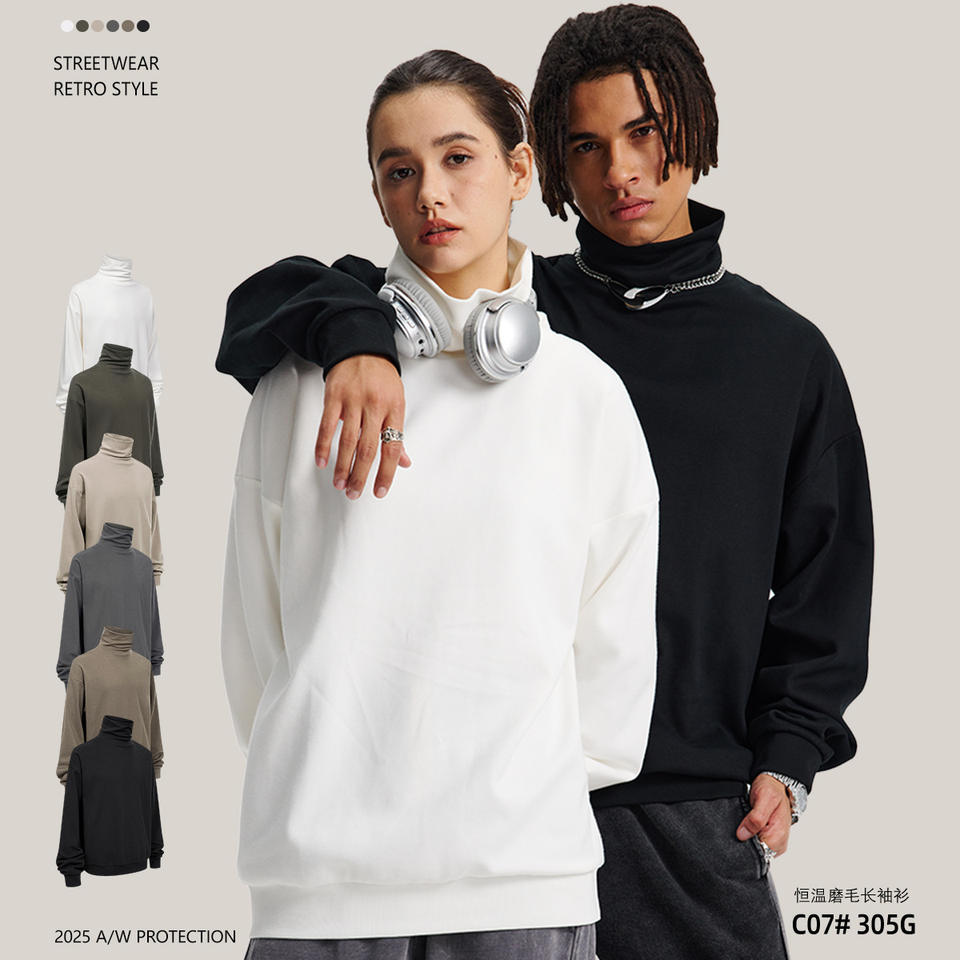 2025 Autumn New Arrival Men's Casual Warm Double-Sided High-Elastic Long-Sleeved Brushed T-Shirt High-Neck Skin-Friendly Hot!