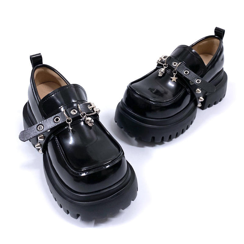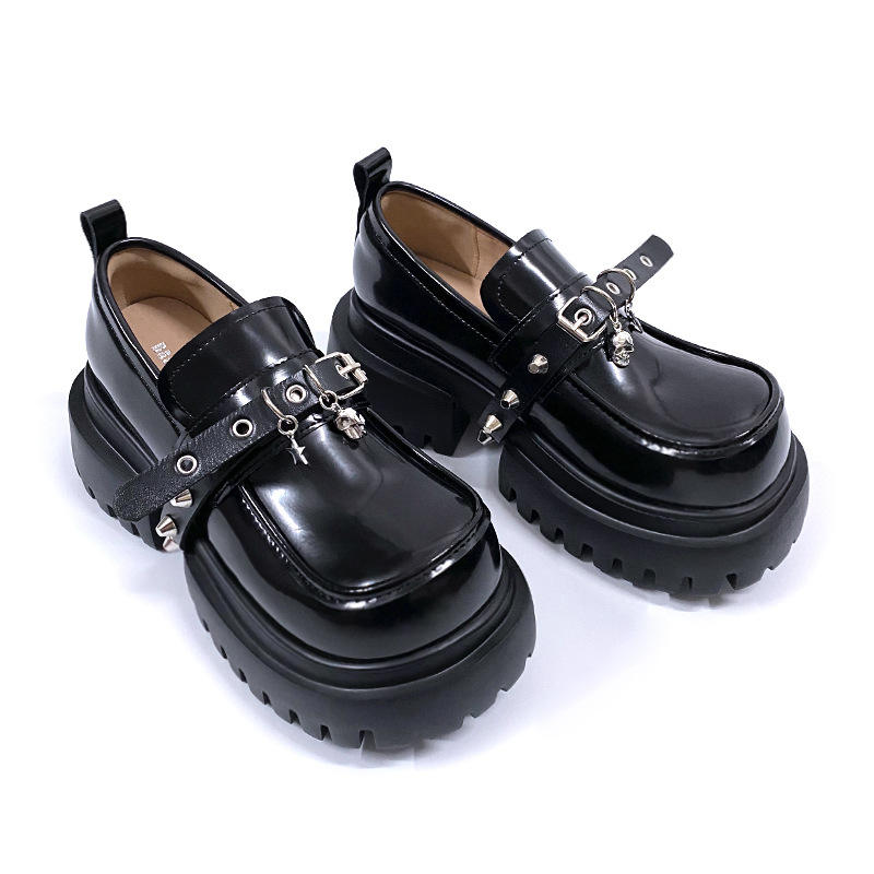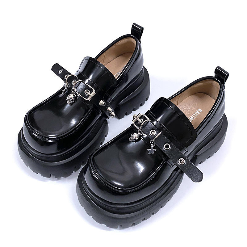 สินค้าใหม่ประจำฤดูใบไม้ร่วงปี 2025: รองเท้าแฟชั่นลำลองเสริมส้นสีดำสำหรับผู้หญิง - รองเท้าหนังเมทัลลิกทรงหัวมนแบบสวมสไตล์เรโทร