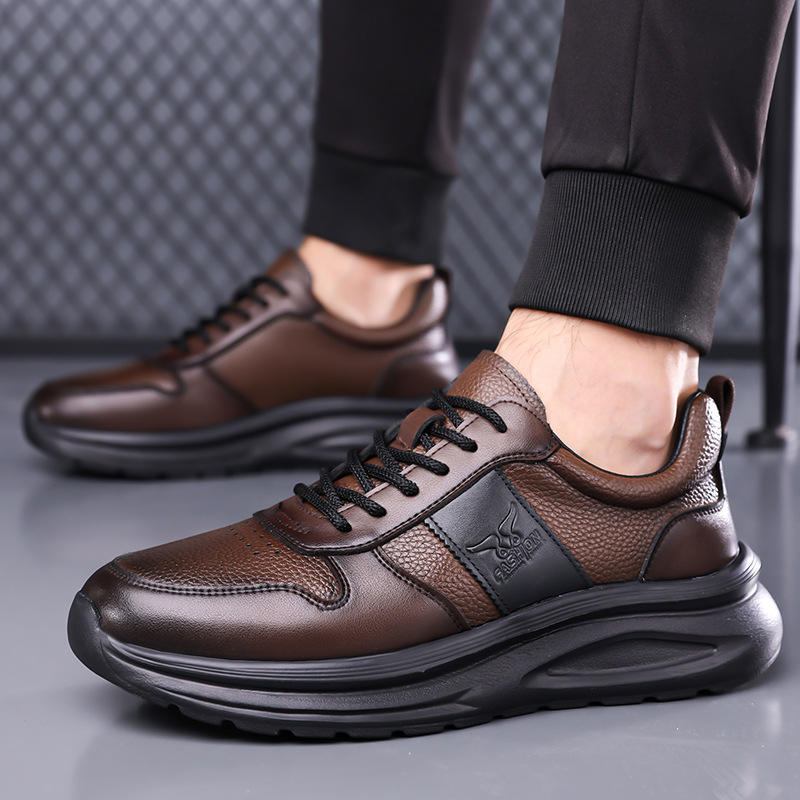 รองเท้าลำลองอเนกประสงค์สำหรับผู้ชาย, รองเท้า2025ฤดูใบไม้ร่วง/ฤดูใบไม้ผลิรองเท้าหนังแท้ระบายอากาศได้ดีรองเท้ากีฬารองเท้าผ้าใบใส่สบาย