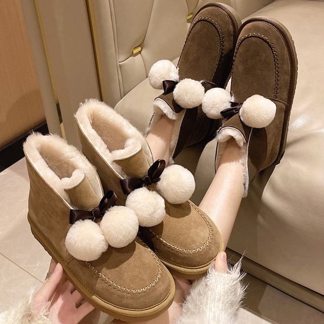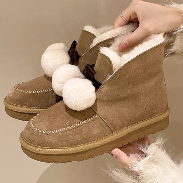 คอลเลคชั่นฤดูใบไม้ร่วง/ฤดูหนาว2025รองเท้าบูทลุยหิมะทำจากขนสัตว์อบอุ่นมากลื่นและนุ่มรองเท้าลุยหิมะกลางแจ้ง