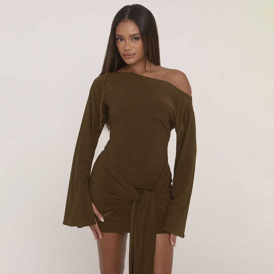 เดรสสั้นสีพื้นแบบพันรอบตัว แต่งระบาย เซ็กซี่ เหมาะสำหรับออกงานกลางคืน คุณภาพสูง เป็นมิตรกับสิ่งแวดล้อม ลดราคาพิเศษ
