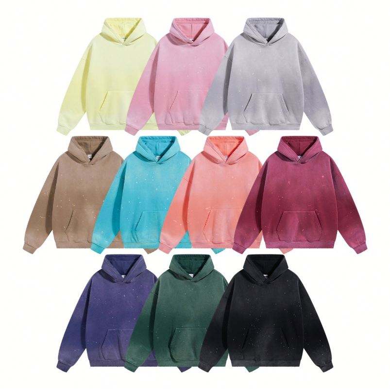 สินค้าใหม่ประจำฤดูใบไม้ร่วง/ฤดูหนาวปี 2025 เสื้อฮู้ดปักลาย ปักลายแบบสเปรย์ย้อมสีซีดจาง 360 กรัม ขอบเสื้อทำสีซีดแบบวินเทจ ไม่มีซับใน