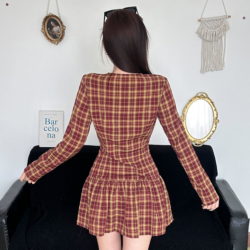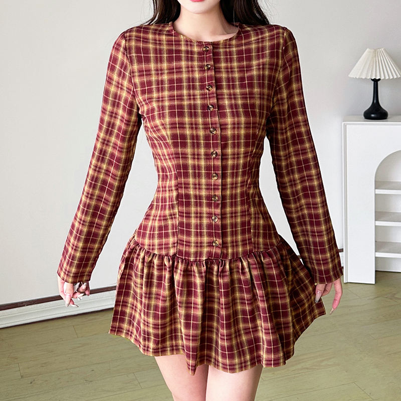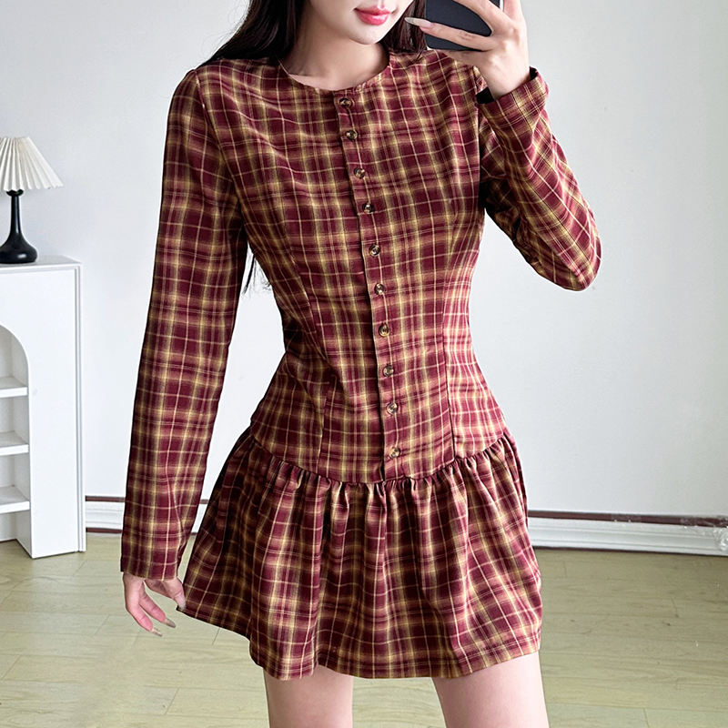 เดรสสไตล์พรีปปี้หวานๆ ผ้าทอธรรมชาติ ระบายอากาศได้ดี ป้องกันไฟฟ้าสถิตย์ สีลูกกวาด กระโปรงทรงตรงลายสก็อตสำหรับผู้หญิง