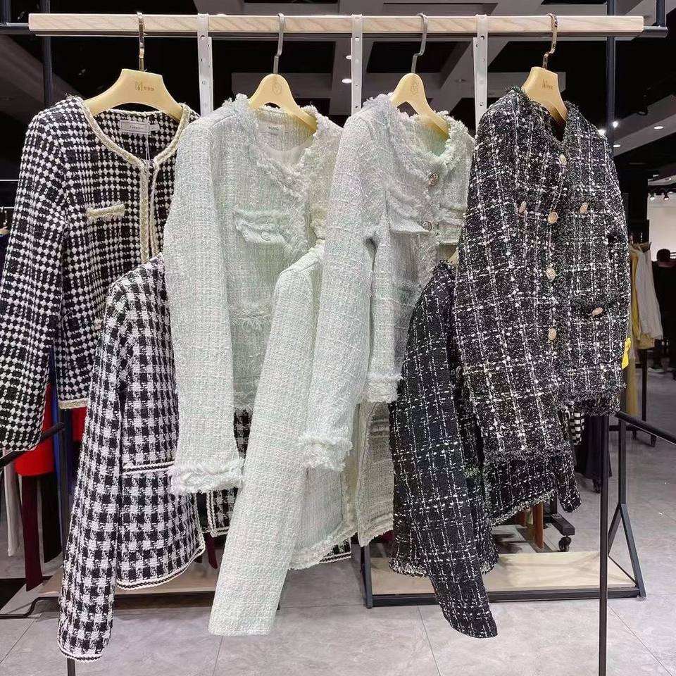 เสื้อโค้ทสไตล์ใหม่ ฤดูใบไม้ร่วงและฤดูหนาว ปี 2025 กลิ่นอายความหอมอ่อนๆ แฟชั่นอินเทรนด์สำหรับผู้หญิง สินค้ามือสองลดราคา เสื้อผ้าผู้หญิง