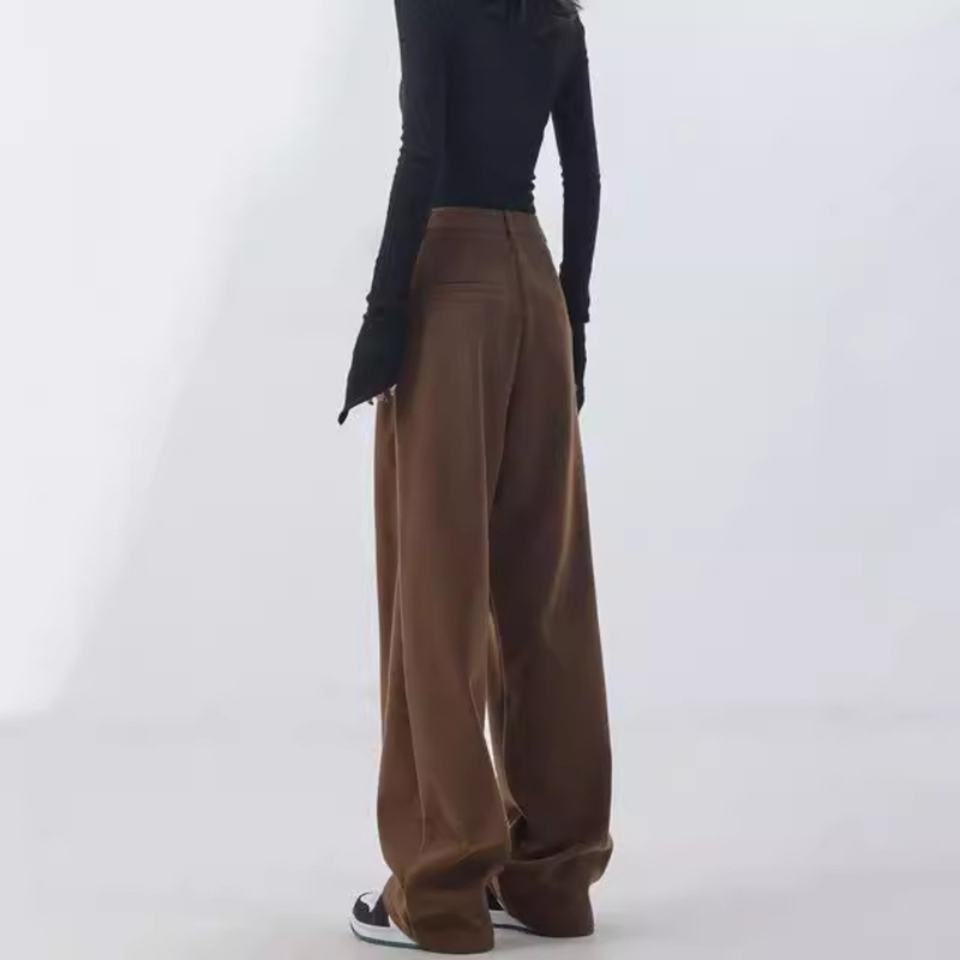 กางเกงลำลองผู้หญิงแบบหนา รุ่นใหม่ ฤดูใบไม้ร่วงและฤดูหนาว ปี 2025 ดีไซน์เรโทรทรงเข้ารูป ขากว้าง | ผมตรงจากโรงงาน