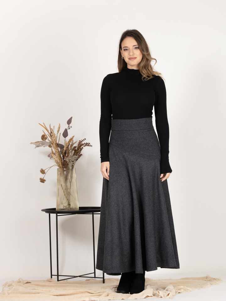 2025 Autumn Collection Female Style High Waist Pleated Skirt Velvet Mesh Waist Midi Skirt with Elastic for Evening Events