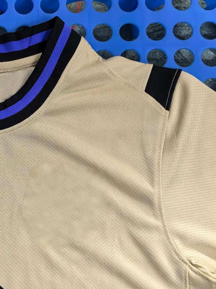 เสื้อแฟนบอลทีมบาร์เซโลนา ชุดเยือน ปี 2025 ผลิตจากโพลีเอสเตอร์ 100% คอกลม แห้งเร็ว