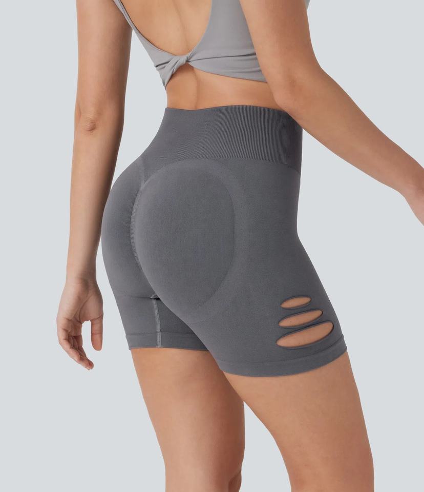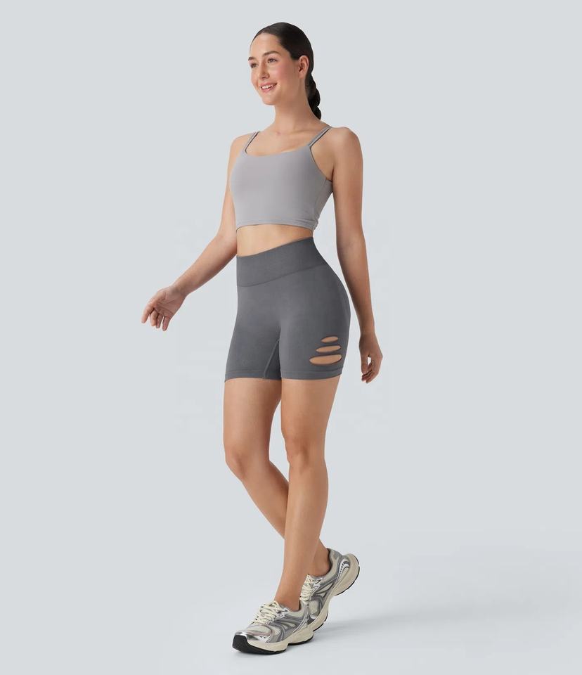 กางเกงขาสั้นเอวสูงของผู้หญิงกางเกงขาสั้นผ้าโพลีเอสเตอร์สีล้วนดีไซน์ใหม่2025